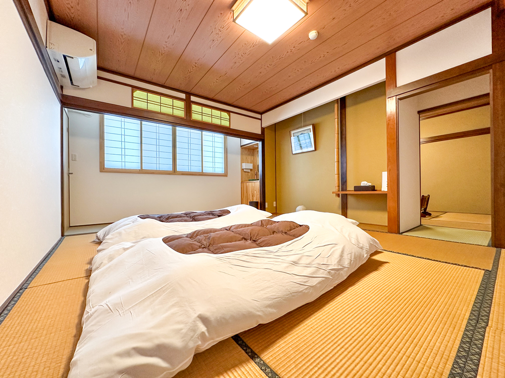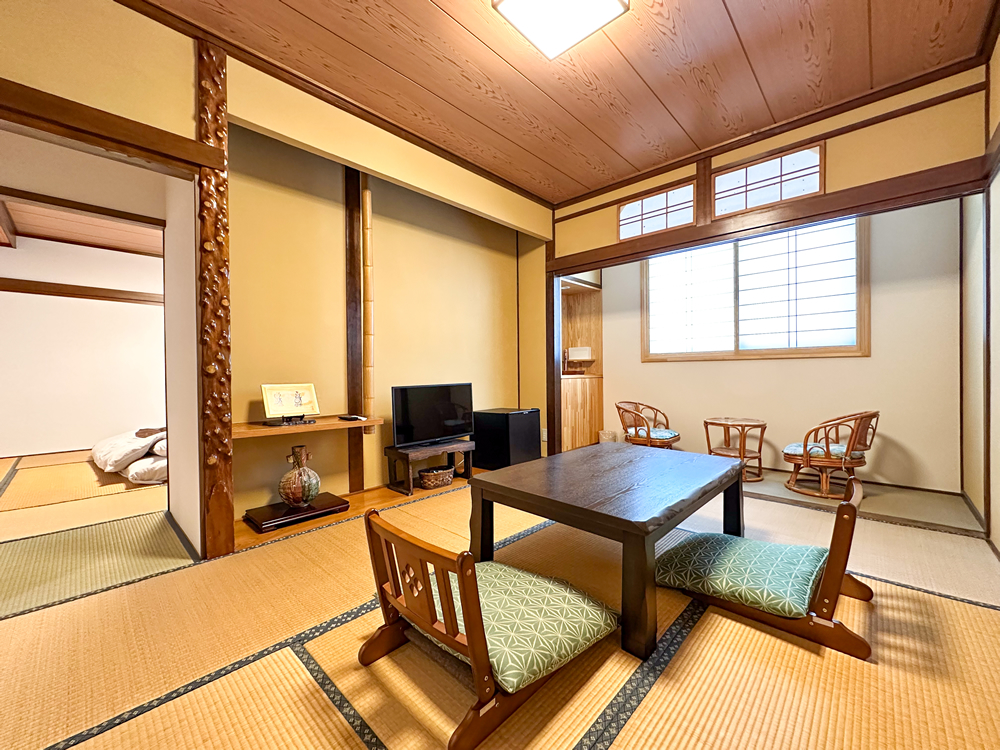 お客様にお寛ぎいただくお部屋は少しづつタイプの違う和室。戸隠の自然に染み渡る静けさと心おきない休日をどうぞ。
